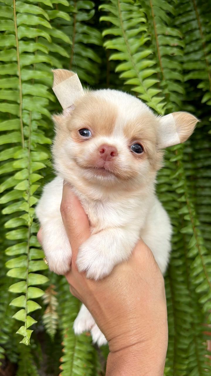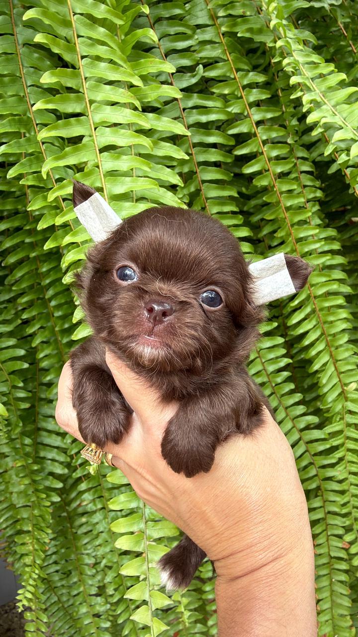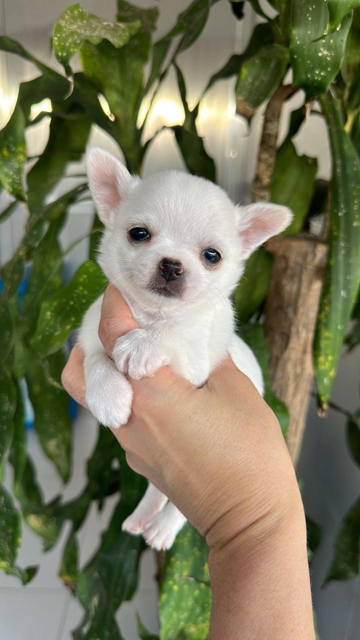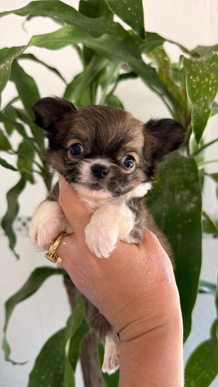 O Chihuahua é uma raça de cão miniatura conhecida por sua coragem, inteligência e personalidade forte, apesar do tamanho pequeno. Existem duas variedades de pelagem, curta ou longa.